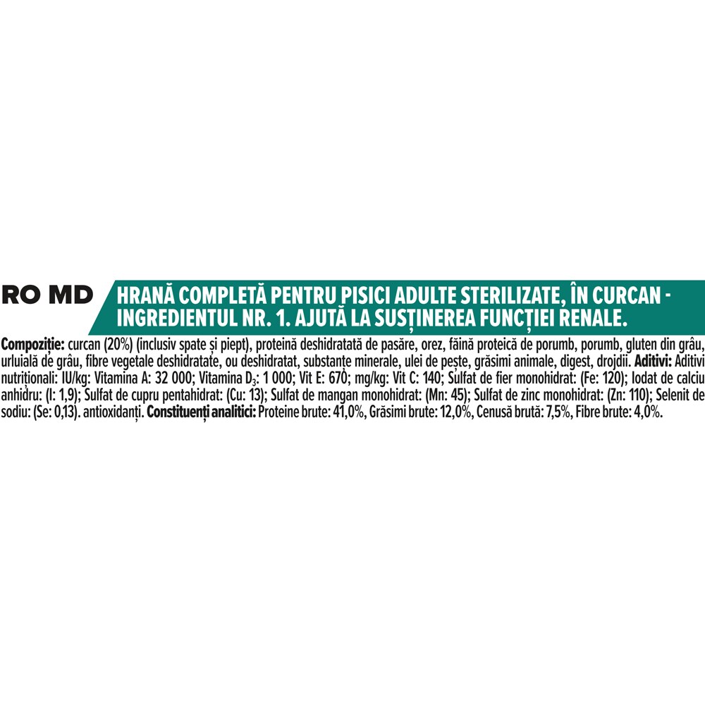 Hrana uscata pentru pisici PURINA PRO PLAN Renal Plus, Sterilised, Curcan, 10 kg
