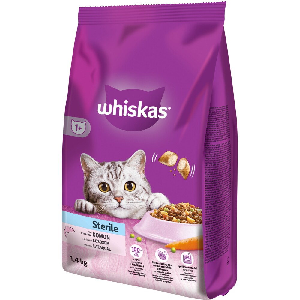 Hrana uscata pentru pisici WHISKAS, Sterile, Somon, 1.4 kg
