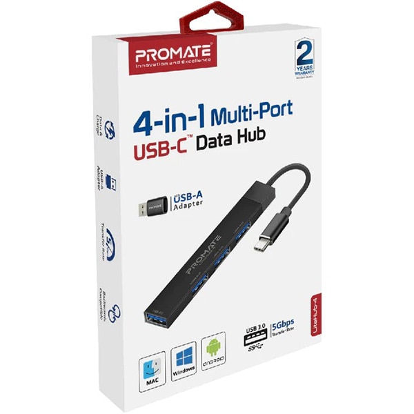 Hub USB PROMATE LiteHub-4, USB 3.0, negru