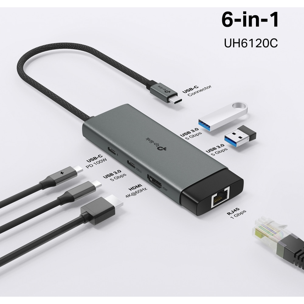 Hub USB TP-LINK UH6120C, USB Type-C, argintiu-negru