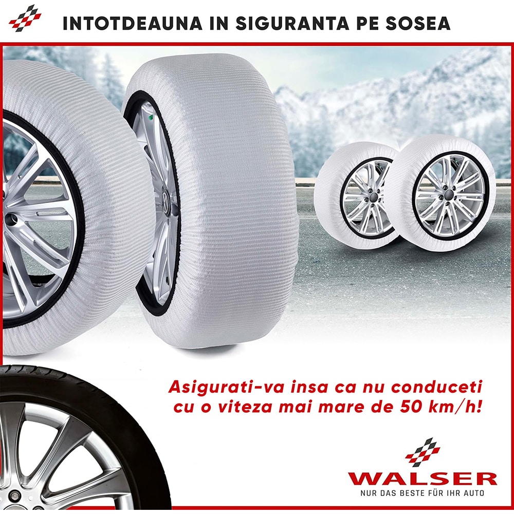 Huse antiderapante auto WALSER Ultra Grip L, textil, 2buc, alb
