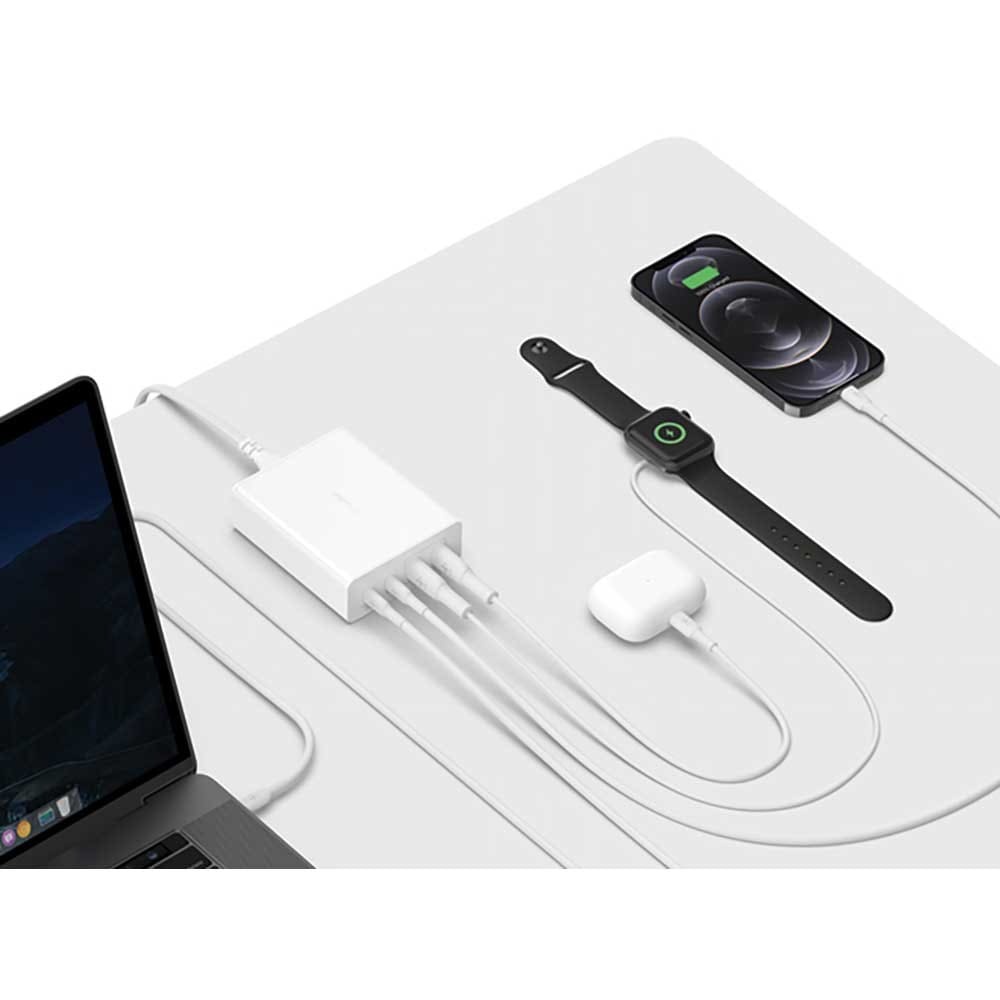 Incarcator retea BELKIN WCH010vfWH, 2xUSB-C 65W, 2xUSB-A 12W, Power Delivery (PD) 108W, GaN, alb
