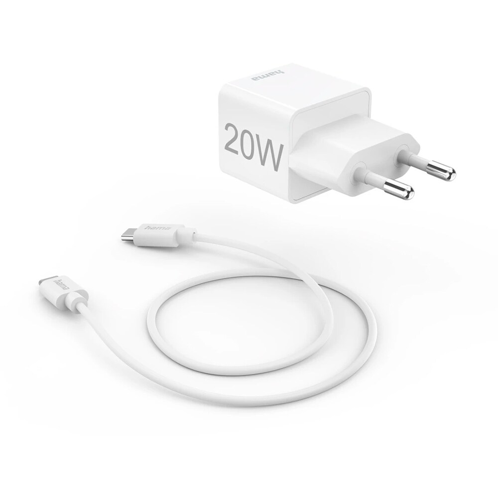 Incarcator retea HAMA 201675, 1xUSB-C, Power Delivery (PD), 20W, Cablu USB-C, alb