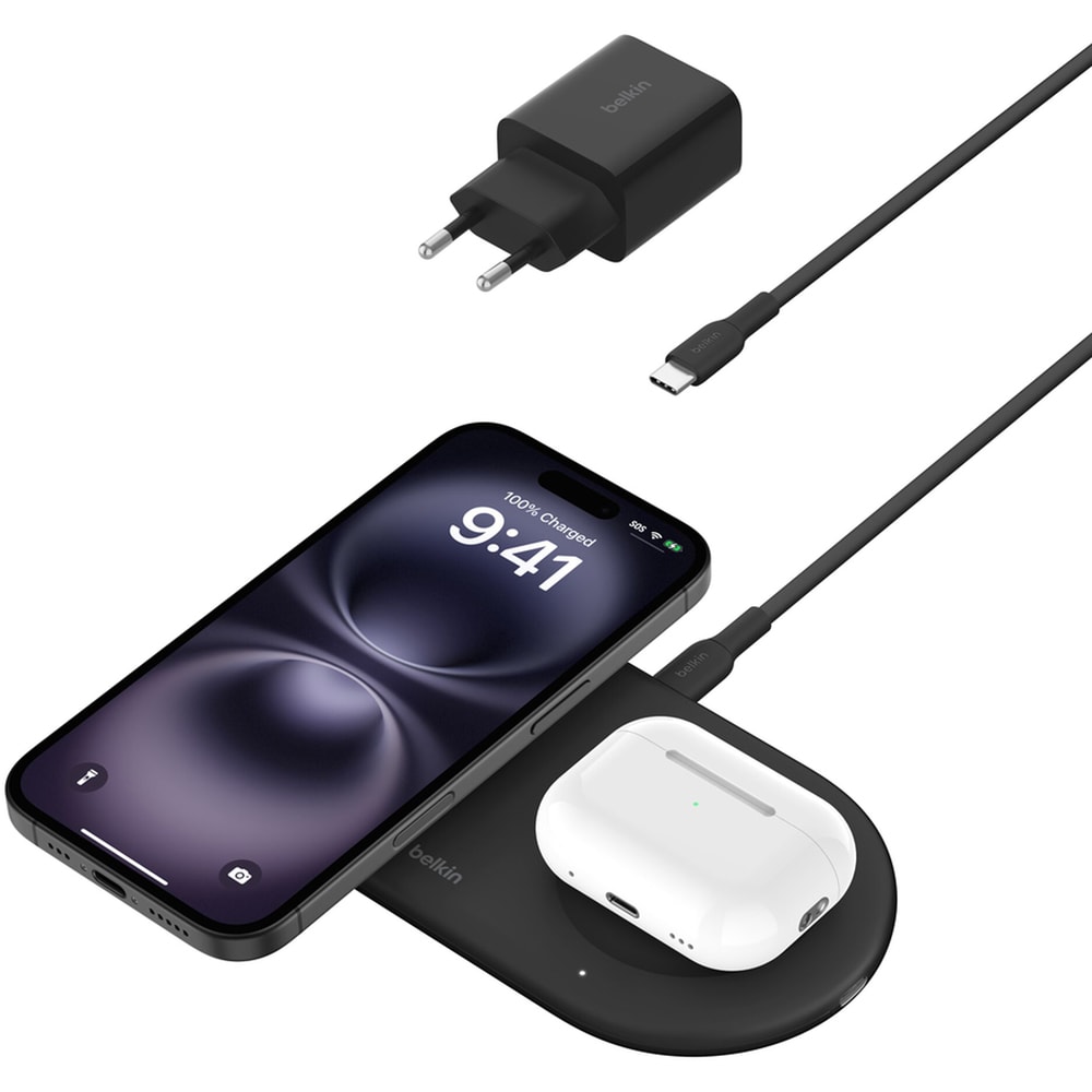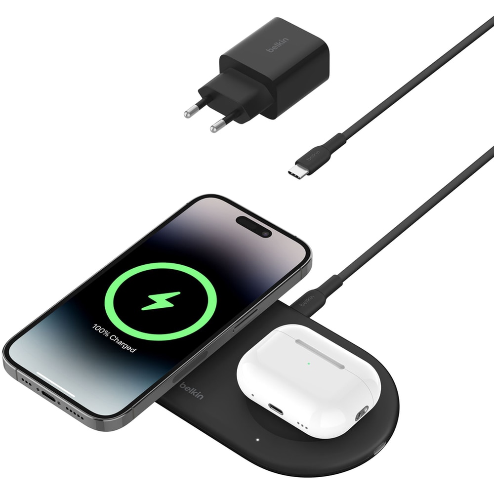 Incarcator wireless 2 in 1 BELKIN WIZ021VFBK, universal, QI, MagSafe 15W, negru