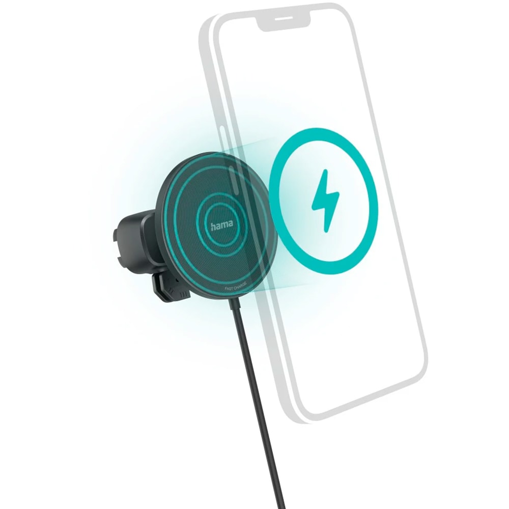 Incarcator wireless auto HAMA MagCharge Car FC15 201697, 15W, MagSafe, negru