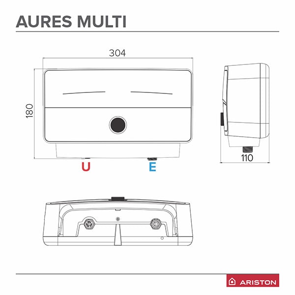 Instant apa calda electric ARISTON Aures Slim Multi, 2.1l/min, 5000W, senzor de debit, supapa de siguranta, alb-negru