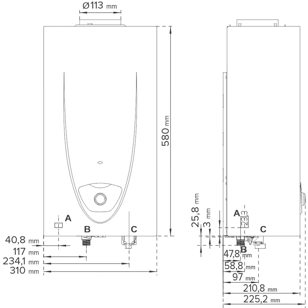 Instant apa calda pe gaz ARISTON Fast Evo X 11 NG, gaz natural, 11l/min, 2150W, NTC, Senzor de siguranta, alb