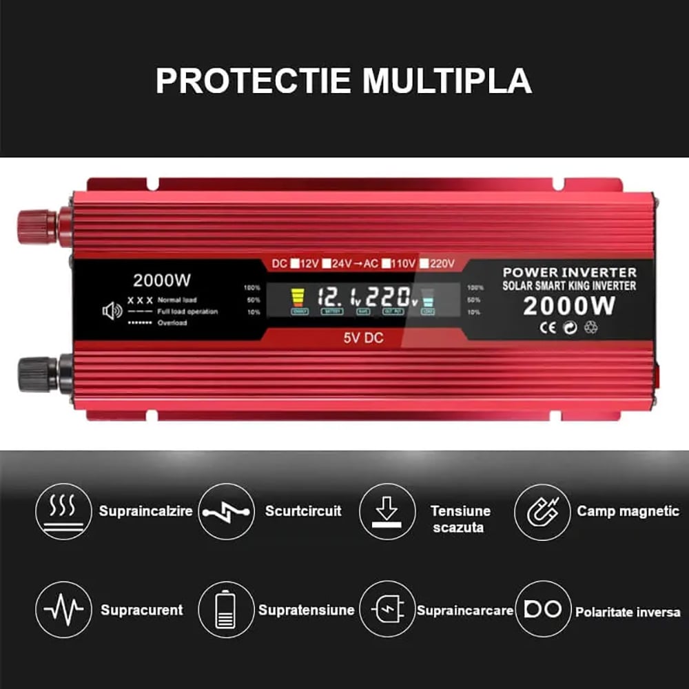 Invertor de tensiune CARMAER 12000R, 2000W, 12V, 220V