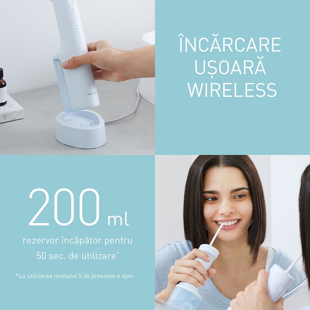 Irigator bucal PANASONIC EW-DJ26-A303, 5 viteze, 2 capete, 200 ml, bleu