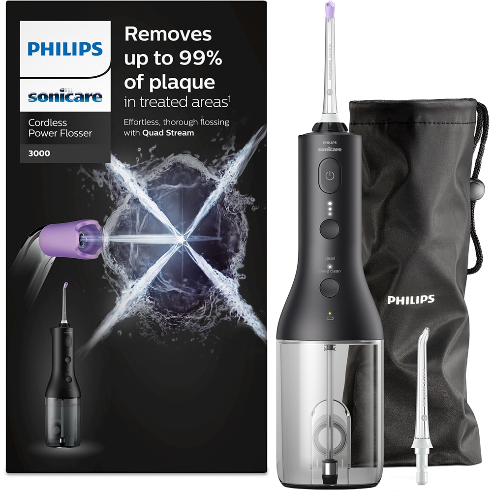 Irigator bucal PHILIPS Sonicare Cordless Power Flosser 3000 HX3826/33, 2 capete, negru
