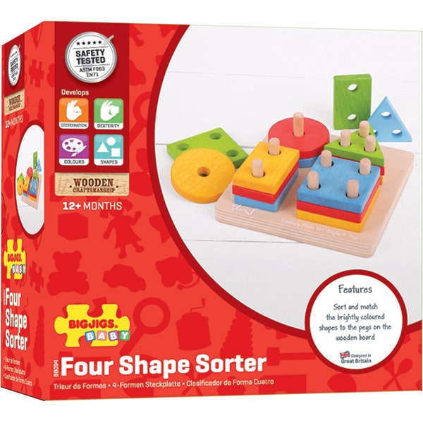 Joc de sortare BIGJIGS 4 forme geometrice BB094, 12 luni+, multicolor