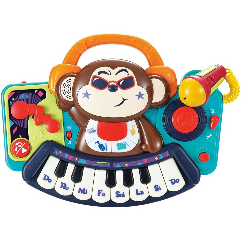 Jucarie interactiva HOLA Pianina Maimutica Dj cu lumini sunete si microfon 037013607, 18 luni+, multicolor