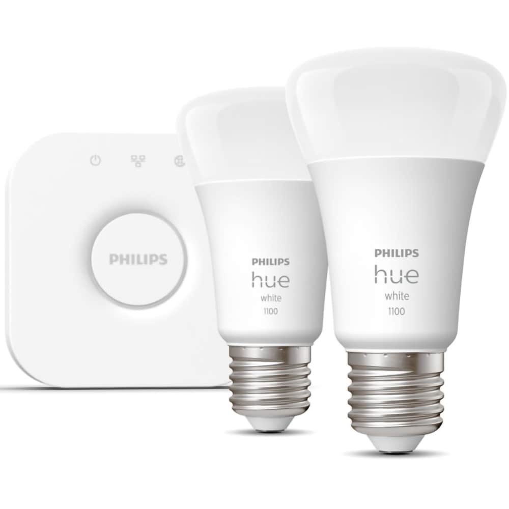 Kit 2 becuri LED PHILIPS HUE, E27, 9.5W, 1055lm, Bridge, Wi-Fi, lumina variabila, compatibil Alexa, Google Assistant