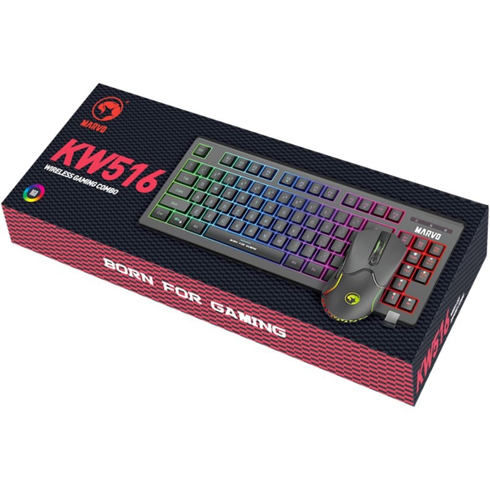 Kit Gaming Wireless tastatura si mouse MARVO KW516, USB, Layout US, negru
