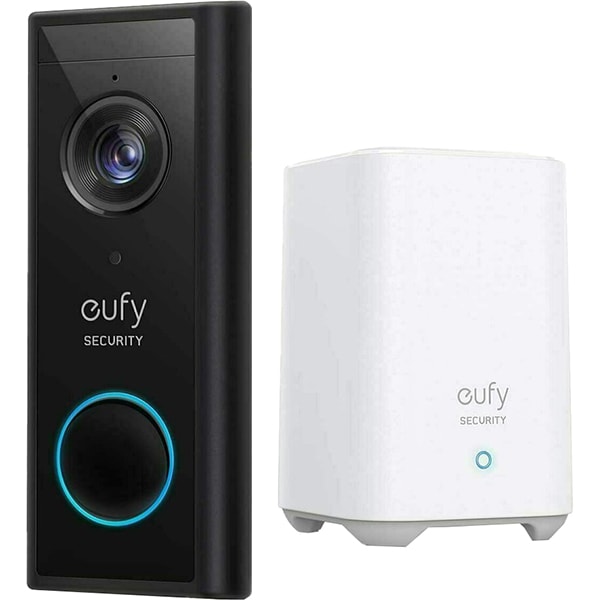 Kit sonerie video wireless + HomeBase EUFY E82101W4, 2K HD, Wi-Fi, negru-alb