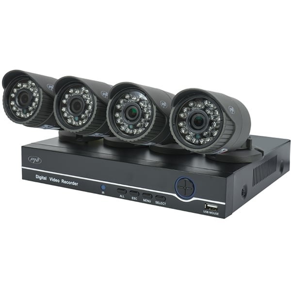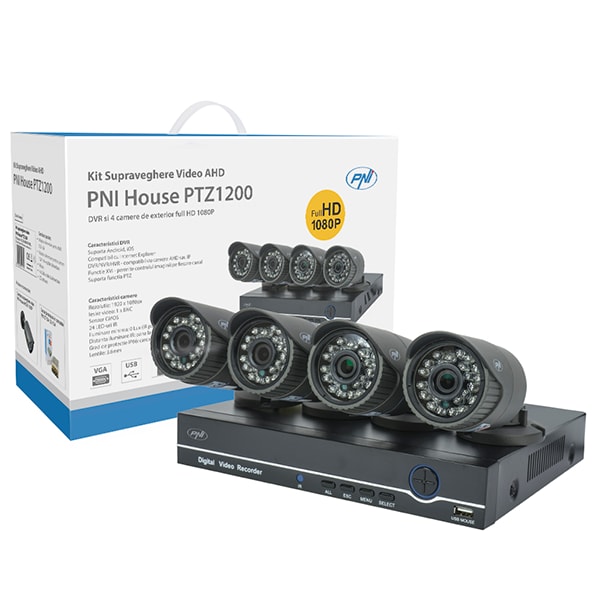 Kit supraveghere video PNI PTZ1200, 4 camere Full HD, NVR, 4 canale, negru