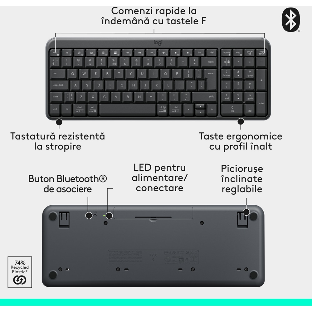 Kit tastatura si mouse Wireless LOGITECH MK250, Bluetooth, Layout US, negru