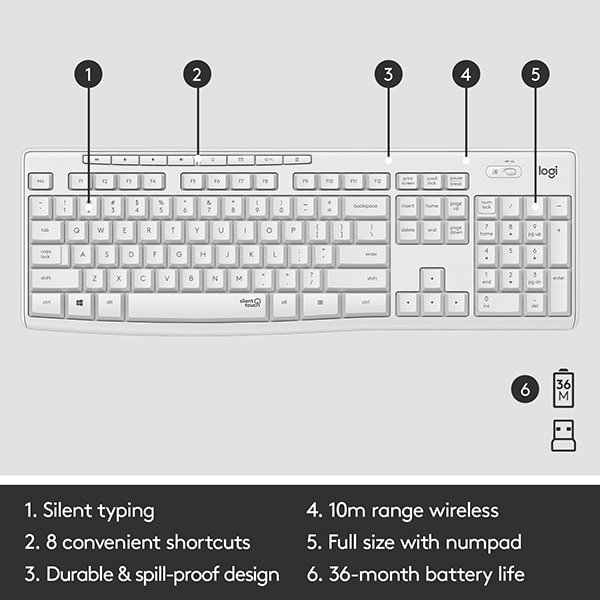 Kit tastatura si mouse Wireless LOGITECH MK295 Silent, USB, alb