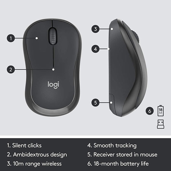 Kit tastatura si mouse Wireless LOGITECH MK295 Silent, USB, grafit
