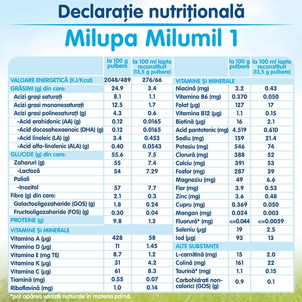 Lapte praf MILUPA MILUMIL 1 PreciNutri 615697, 0-6 luni, 600g