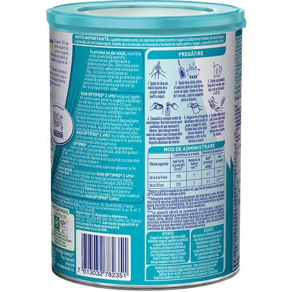 Lapte praf NESTLE NAN Optipro 2 HM-O 12426033, 6 luni+, 400g