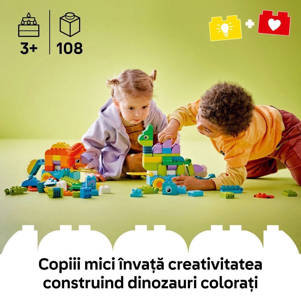 LEGO DUPLO: Dinozauri pe roti 3in1 10451, 3 ani+, 108 piese