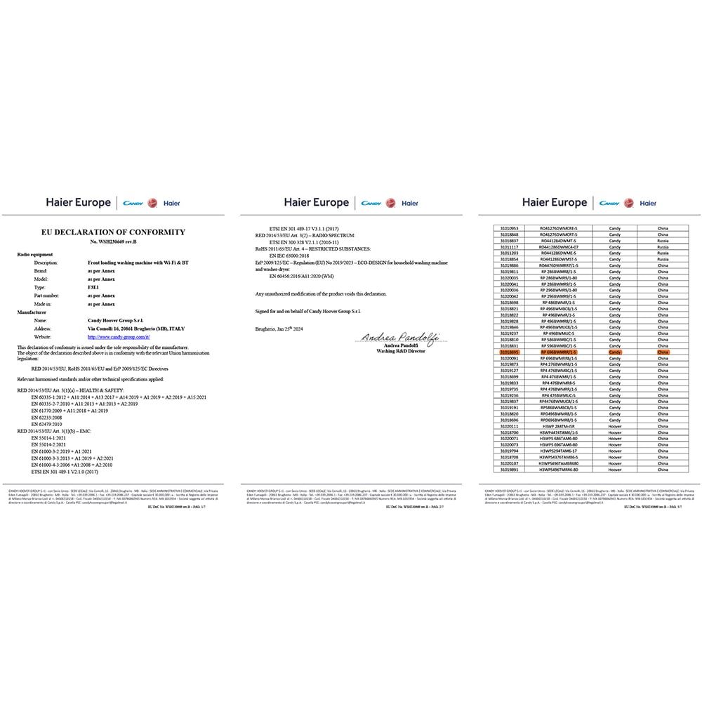 Masina de spalat rufe frontala CANDY RP 696BWMRR/1-S, Wi-Fi, 9 kg, 1600rpm, Clasa A, antracit