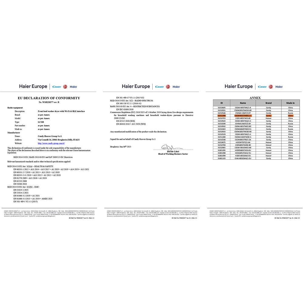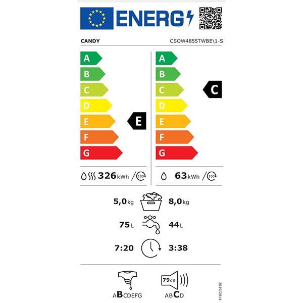 Masina de spalat rufe frontala cu uscator CANDY CSOW4855TWBE/1-S, 8/5 kg, 1400 rpm, Clasa C/E, alb