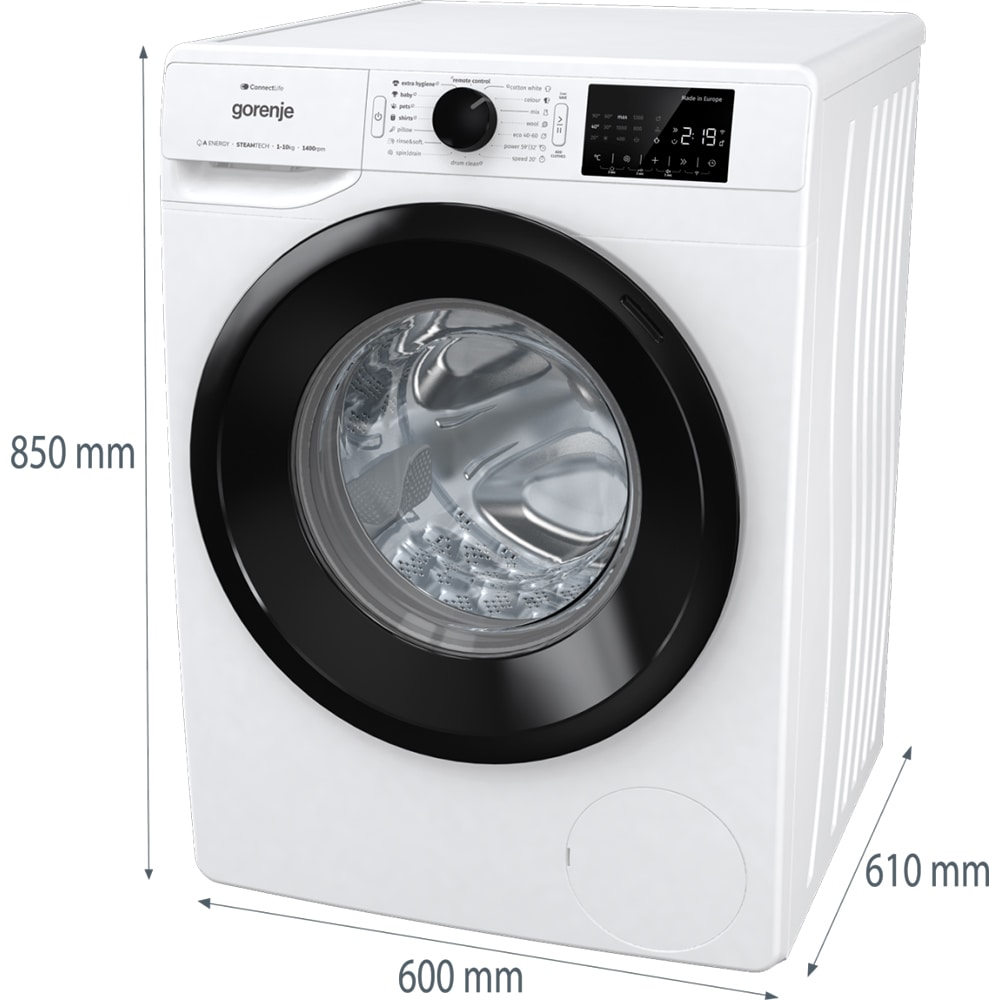 Masina de spalat rufe frontala GORENJE WPNEI14A2SWIFI, SteamTech, 10 kg, 1400rpm, Clasa A, Wi-Fi, alb