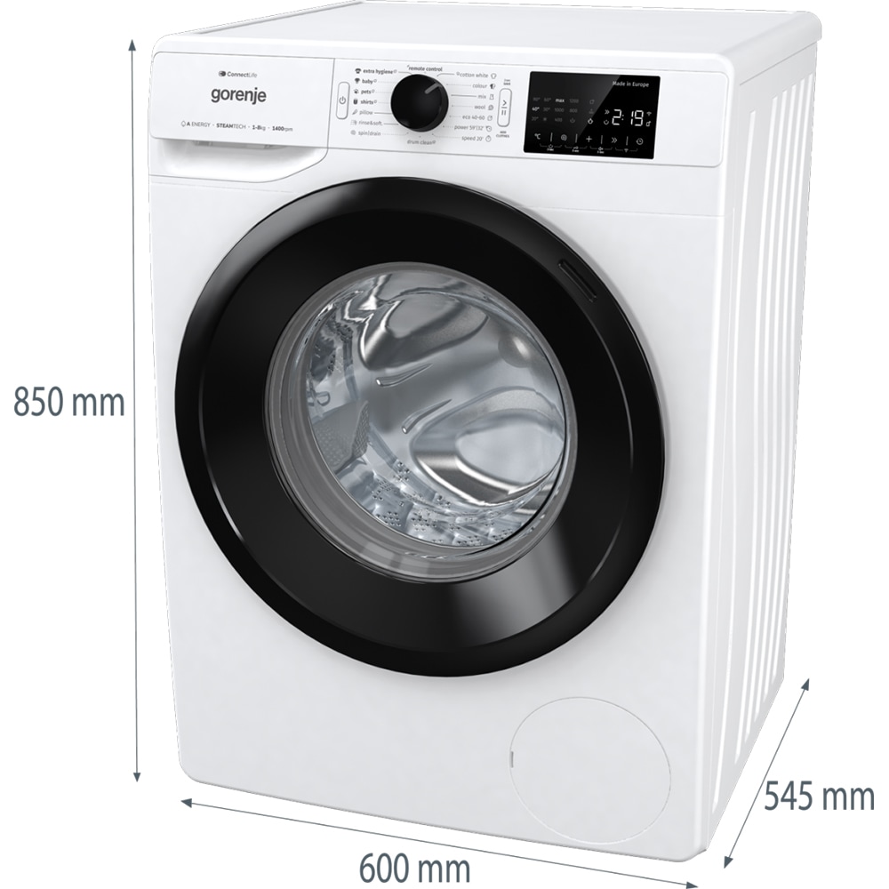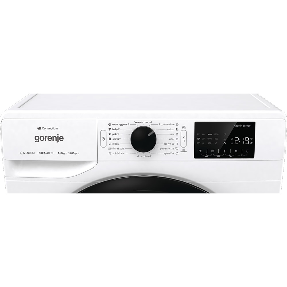 Masina de spalat rufe frontala GORENJE WPNEI84A1SWIFI, SteamTech, 8 kg, 1400rpm, Clasa A, Wi-Fi, alb
