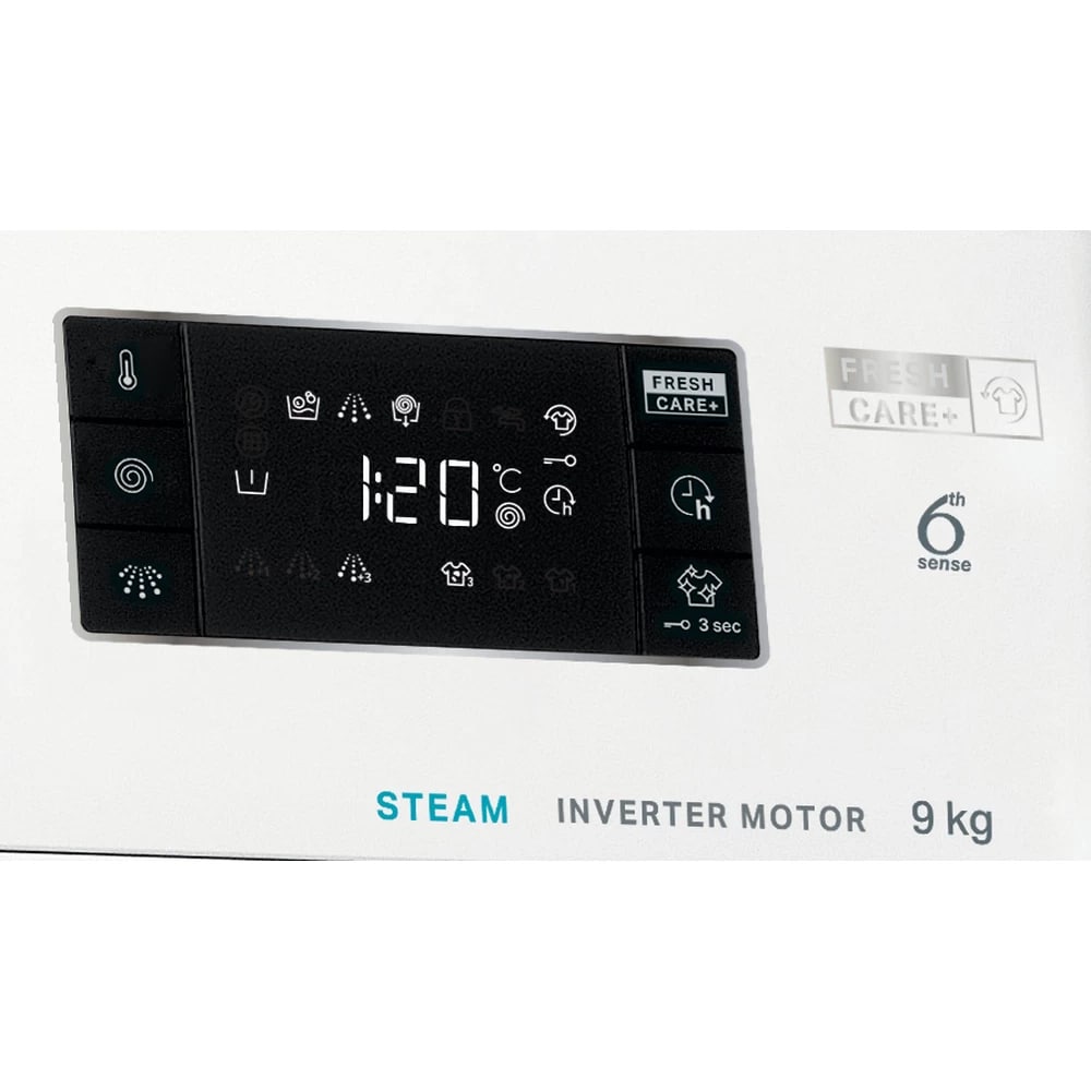 Masina de spalat rufe frontala WHIRLPOOL FFB 9489 WV EE, Steam, 6th Sense, 9 kg, 1400rpm, Clasa A, alb