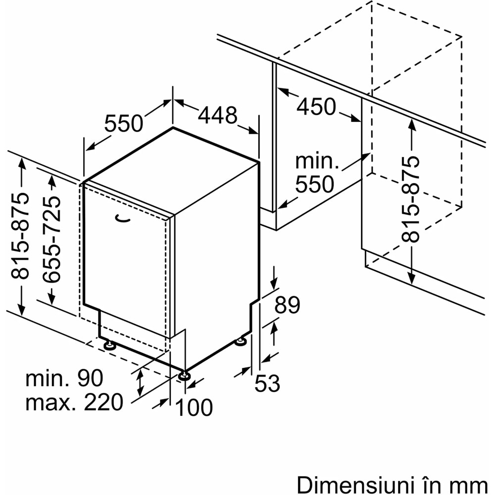 Masina de spalat vase incorporabila BOSCH SPV6EMX05E, 10 seturi, 6 programe, 45 cm, Clasa C, panou comanda inox