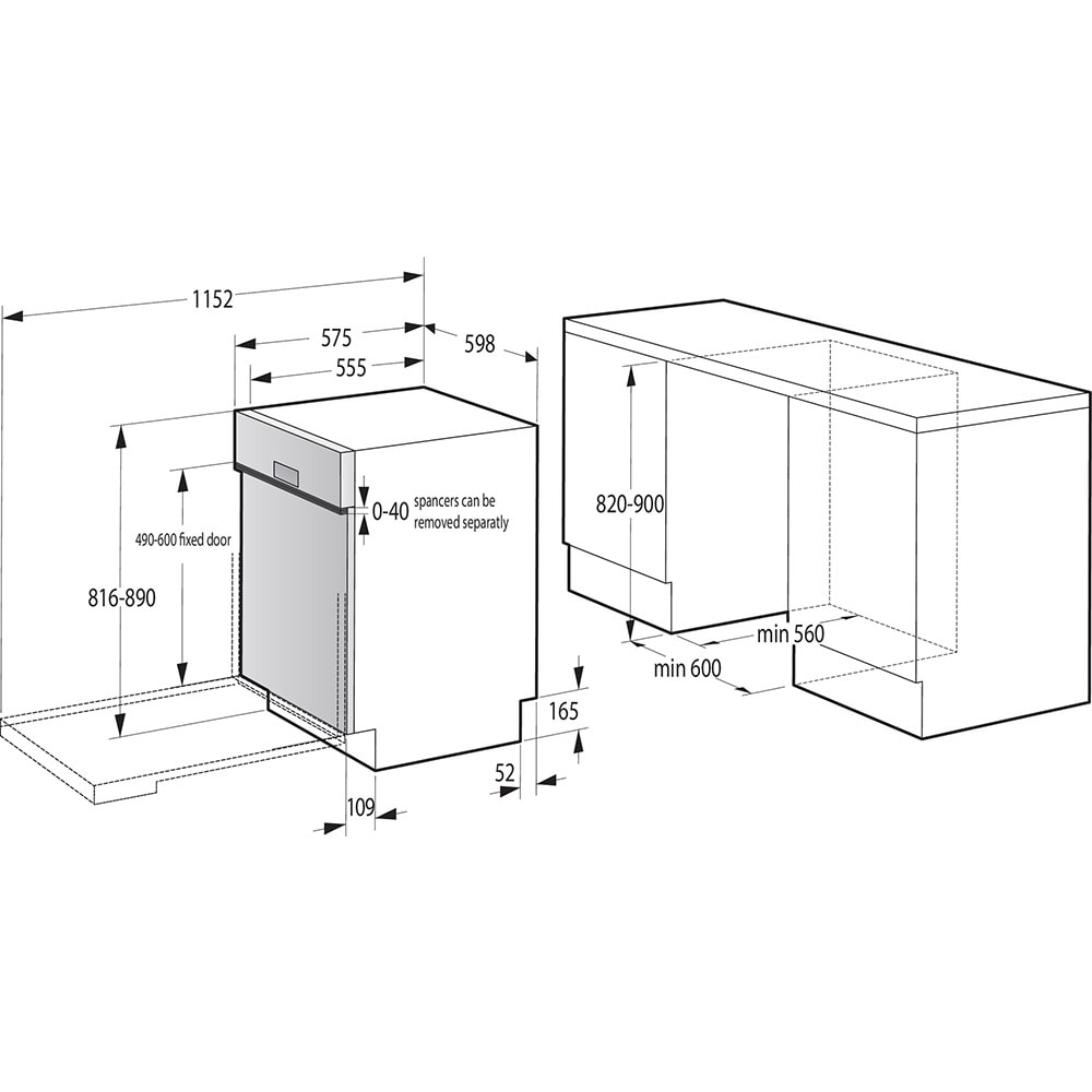 Masina de spalat vase semi-incorporabila GORENJE GI673C60X, 16 seturi, 7 programe, 60 cm, Clasa C, inox