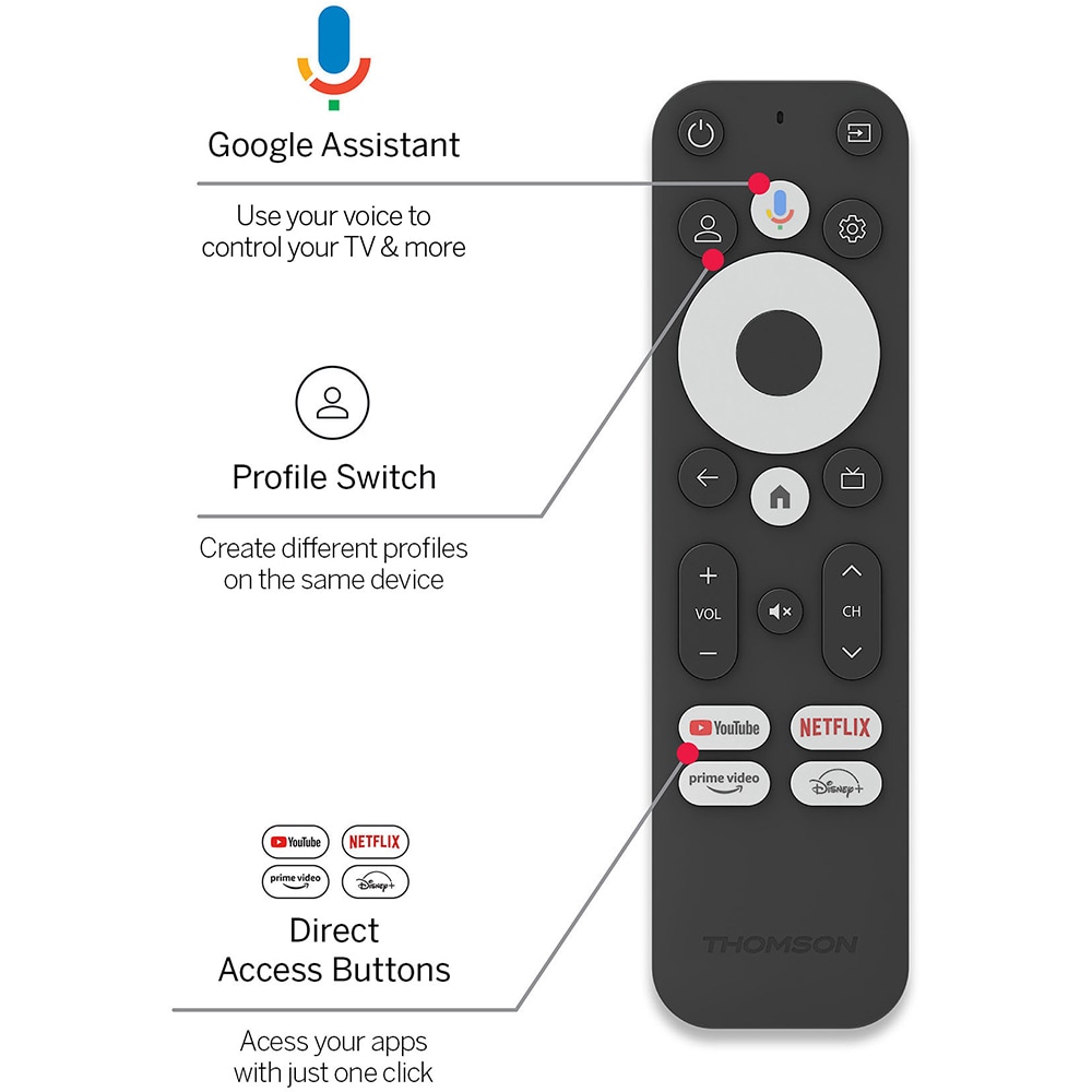 Mediaplayer THOMSON Streaming Stick 140, 4K, Wi-Fi, Bluetooth, negru