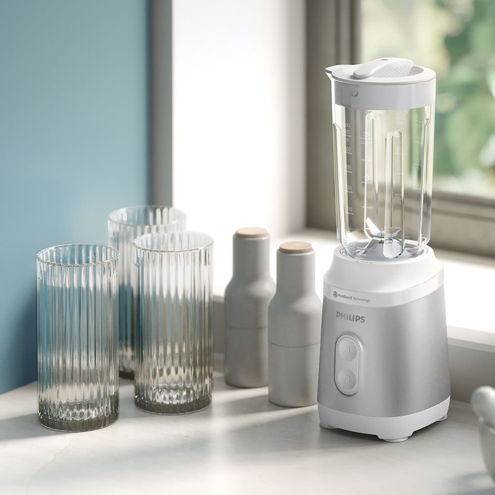Mini blender PHILIPS Seria 3000HR2510/90, 0.6l, 350W, 2 trepte viteza, alb-gri