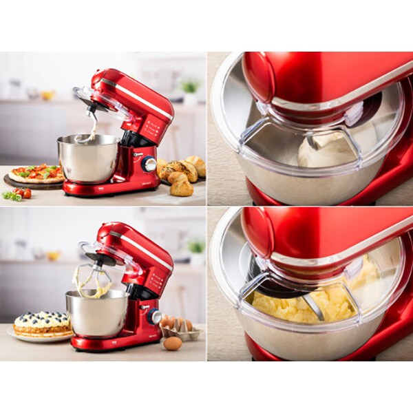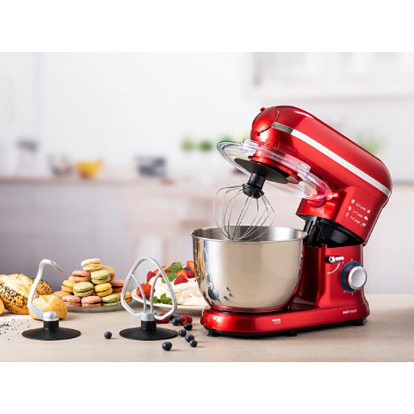 Mixer cu bol DELIMANO 110000000, 4.5l, 1400W, 6 trepte viteza, rosu-argintiu