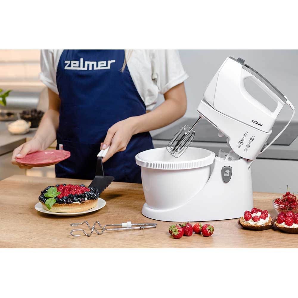 Mixer cu bol ZELMER ZHM2559, 3l, 750W, 5 trepte viteza, alb-gri
