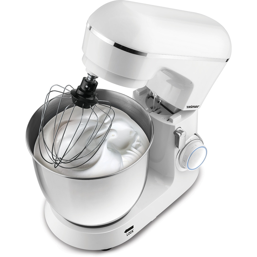 Mixer cu bol ZELMER ZKR1300W, 5l, 1300W, 10 trepte viteza, alb-argintiu