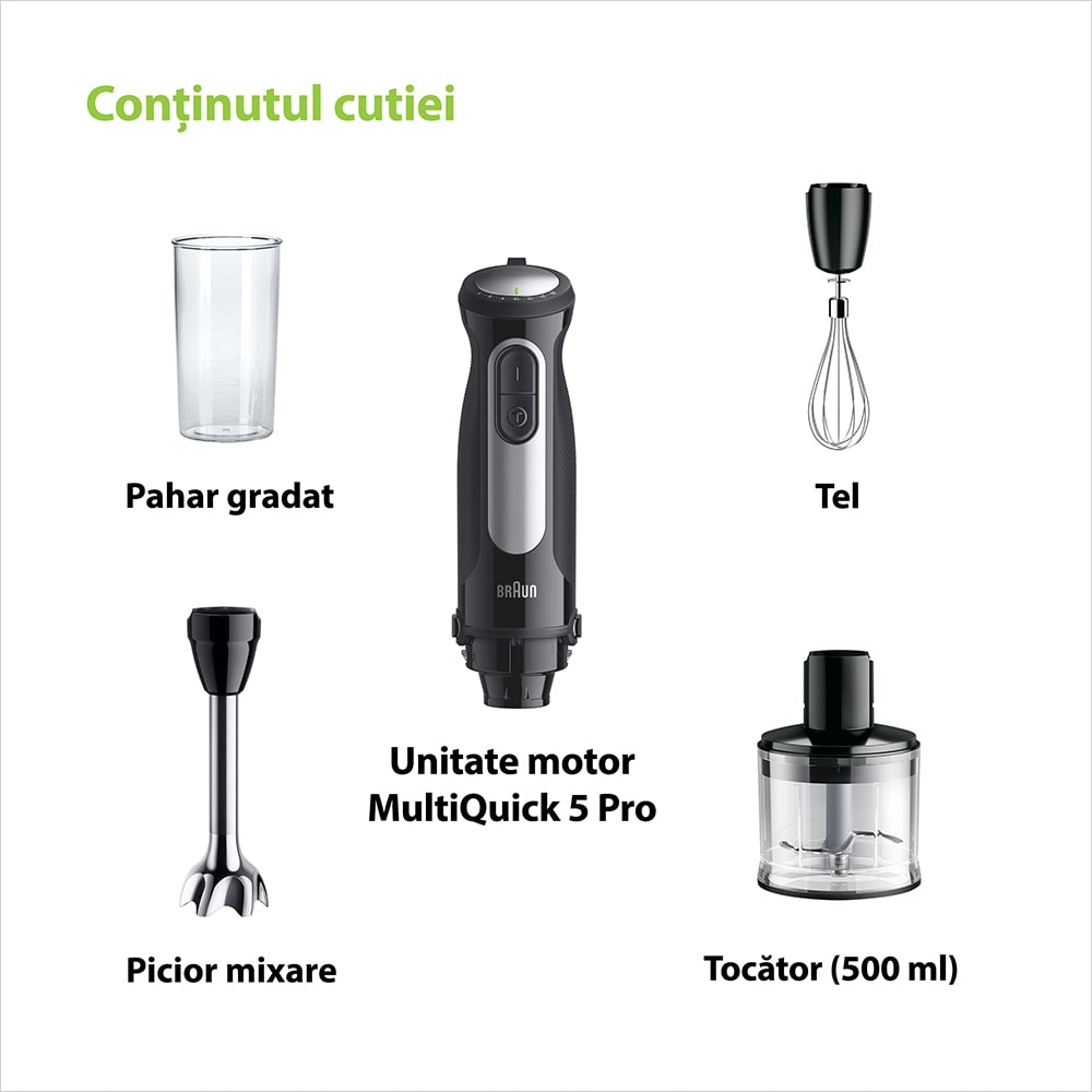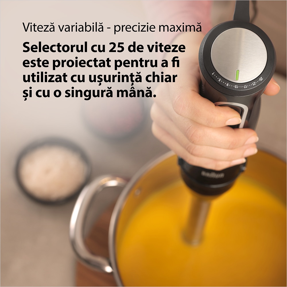 Mixer vertical BRAUN MultiQuick 5 Pro MQ55236M, 0.6l, 1000W, 25 trepte viteza, negru-argintiu