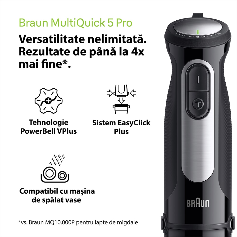 Mixer vertical BRAUN MultiQuick 5 Pro MQ55307M, 0.6l, 1000W, 25 trepte viteza, negru-argintiu