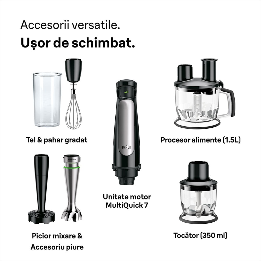 Mixer vertical BRAUN MultiQuick 7 MQ7087X, 1.5l, 1000W, viteza variabila, negru-argintiu