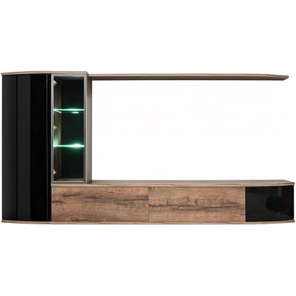 Mobila living Dark 20 DMS DK, stejar monastery-negru lucios, 255 x 40 x 130 cm