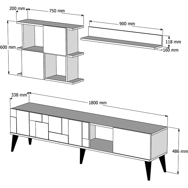 Mobila living Madrid, nuc-antracit, 180 x 33.8 x 48.6 cm