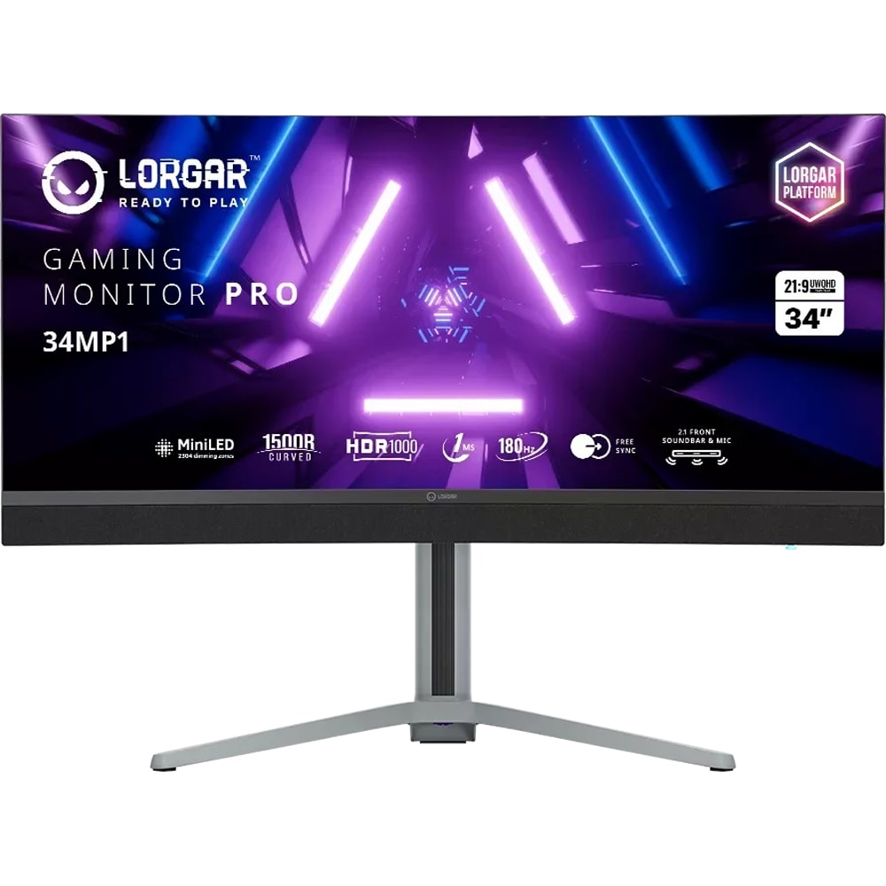 Monitor Gaming curbat Mini LED VA LORGAR Pro 34MP1, 34", UWQHD, 180Hz, HDR, AMD FreeSync, boxe, negru