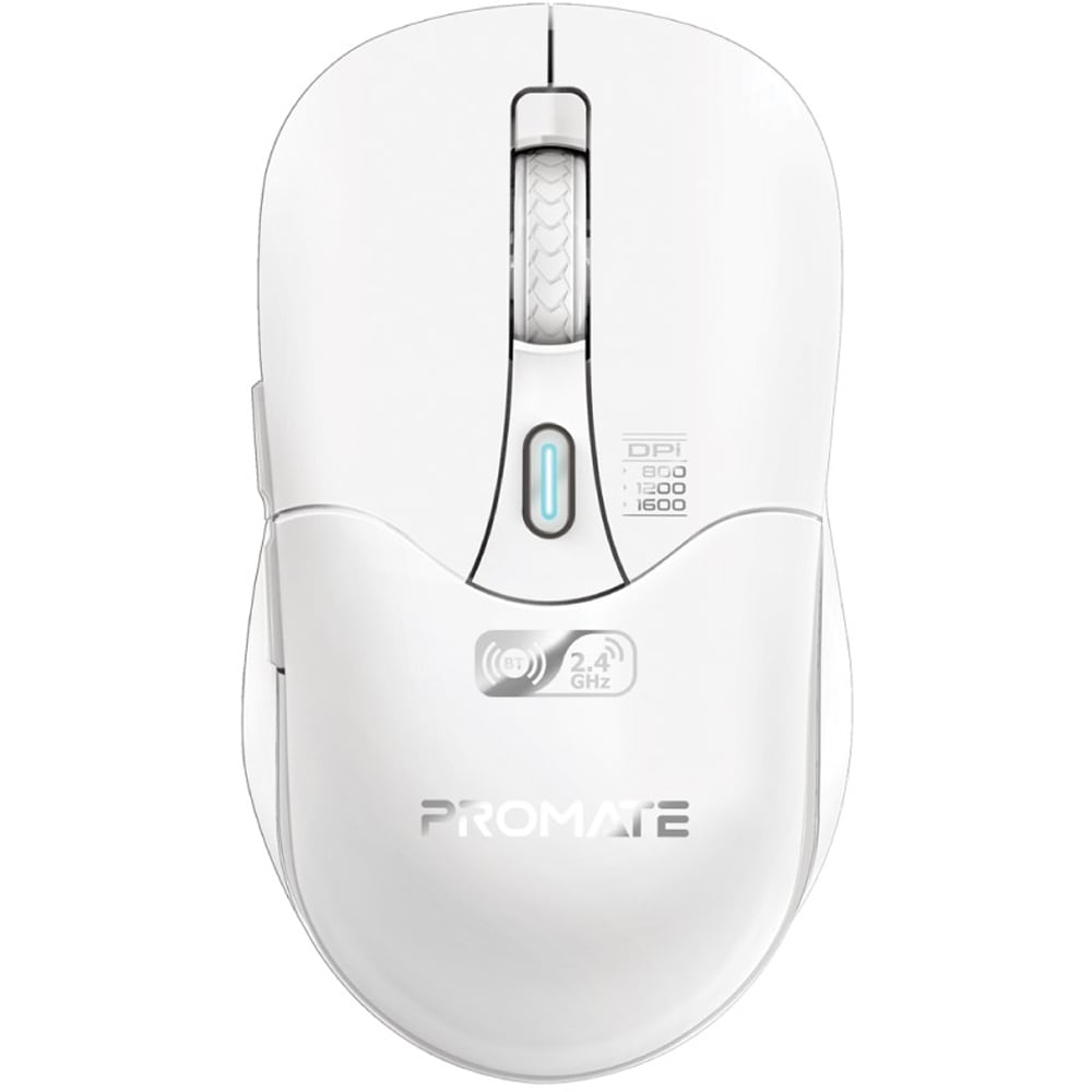 Mouse Wireless PROMATE Samo, Dual Mode, 1600 dpi, Bluetooth, alb