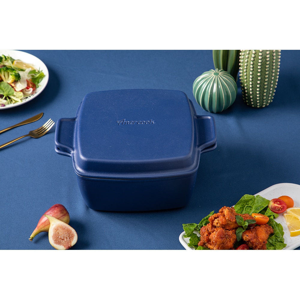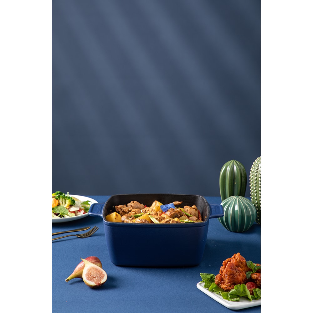 Oala cu capac AMERCOOK Le Pluriel AC0112805.24PE, 5l.2l, 24 cm, fonta, albastru