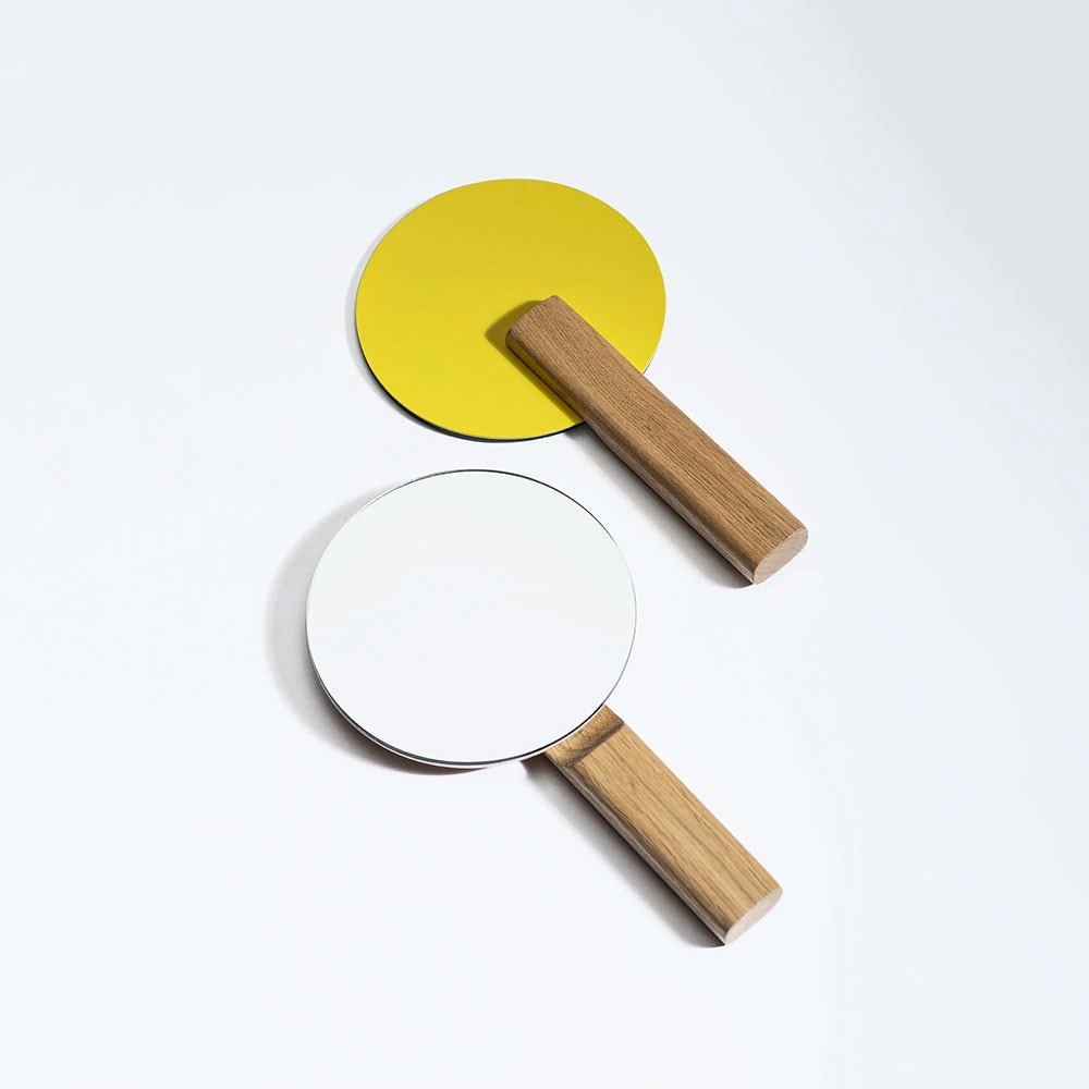 Oglinda cosmetica SPIN Paddle Vanity, 15 x 25 cm, Lemn, galben