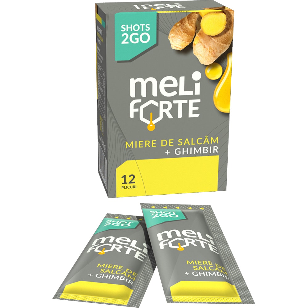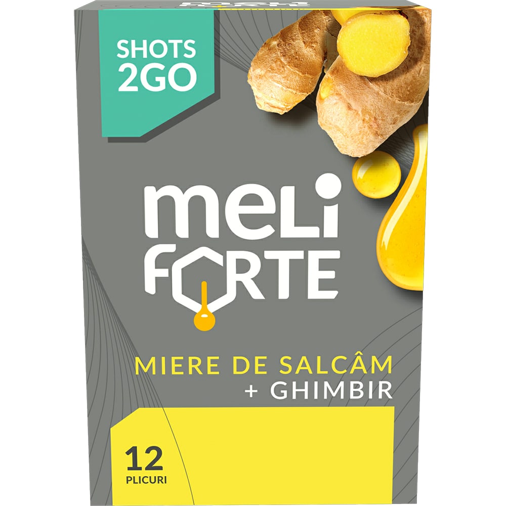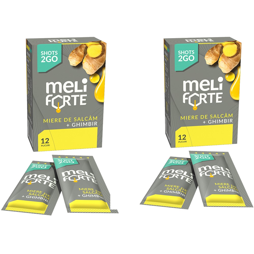 Pachet 2 x Miere de salcam si ghimbir x 12 plicuri, 240 g, MELIFORTE