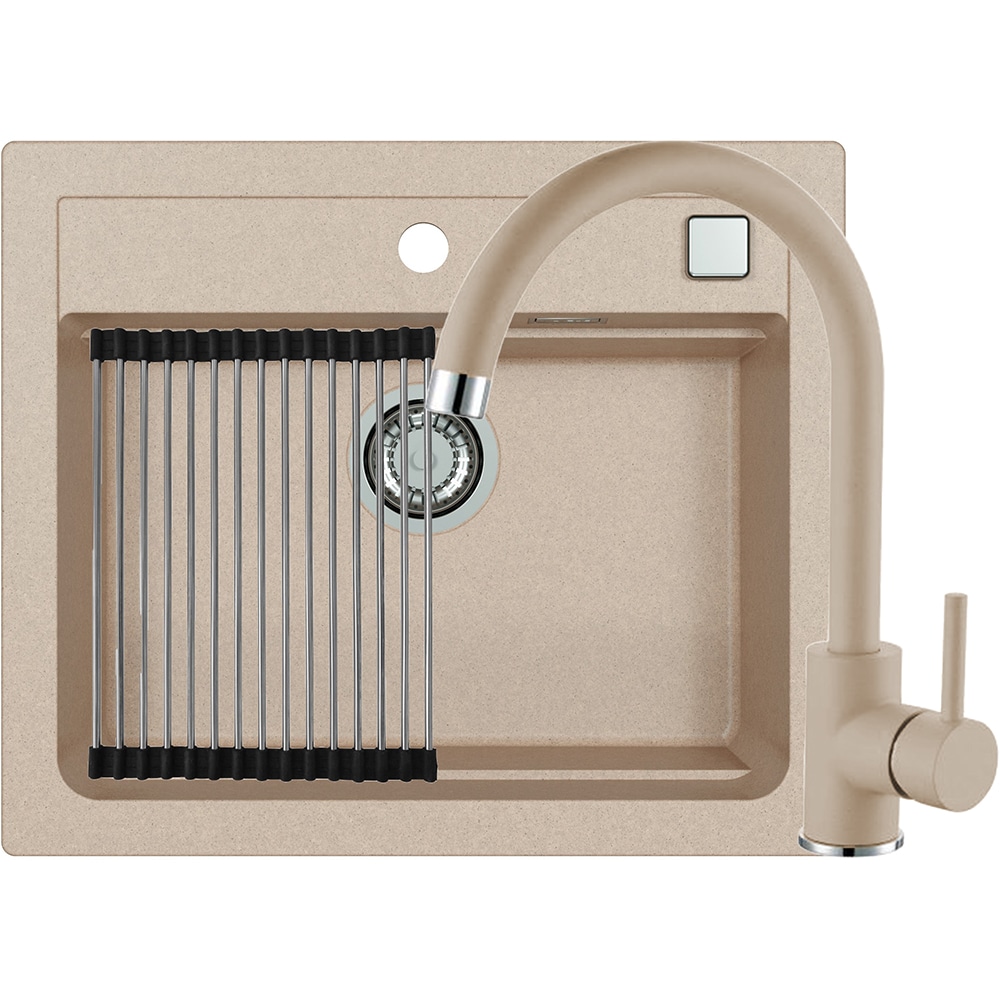 Pachet chiuveta ALVEUS Atrox 30 G22, 1 cuva, compozit granit + baterie Kati G22, crem