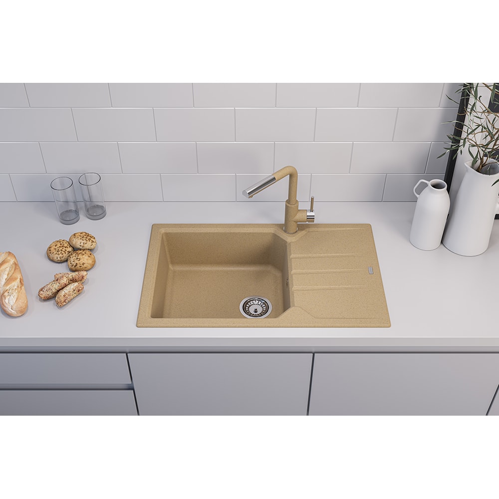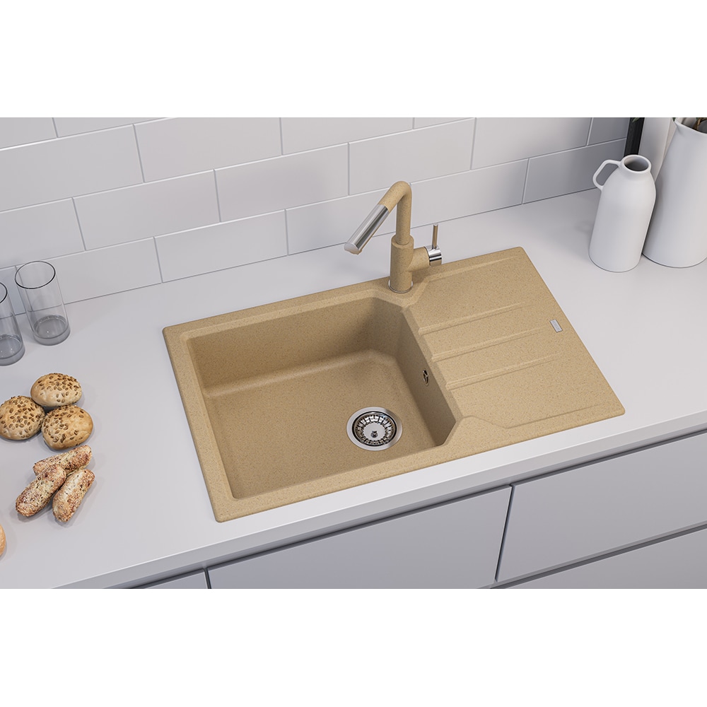 Pachet chiuveta ALVEUS Record 40 G55, 1 cuva, picurator reversibil, compozit granit + baterie Flexa + dozator, bej